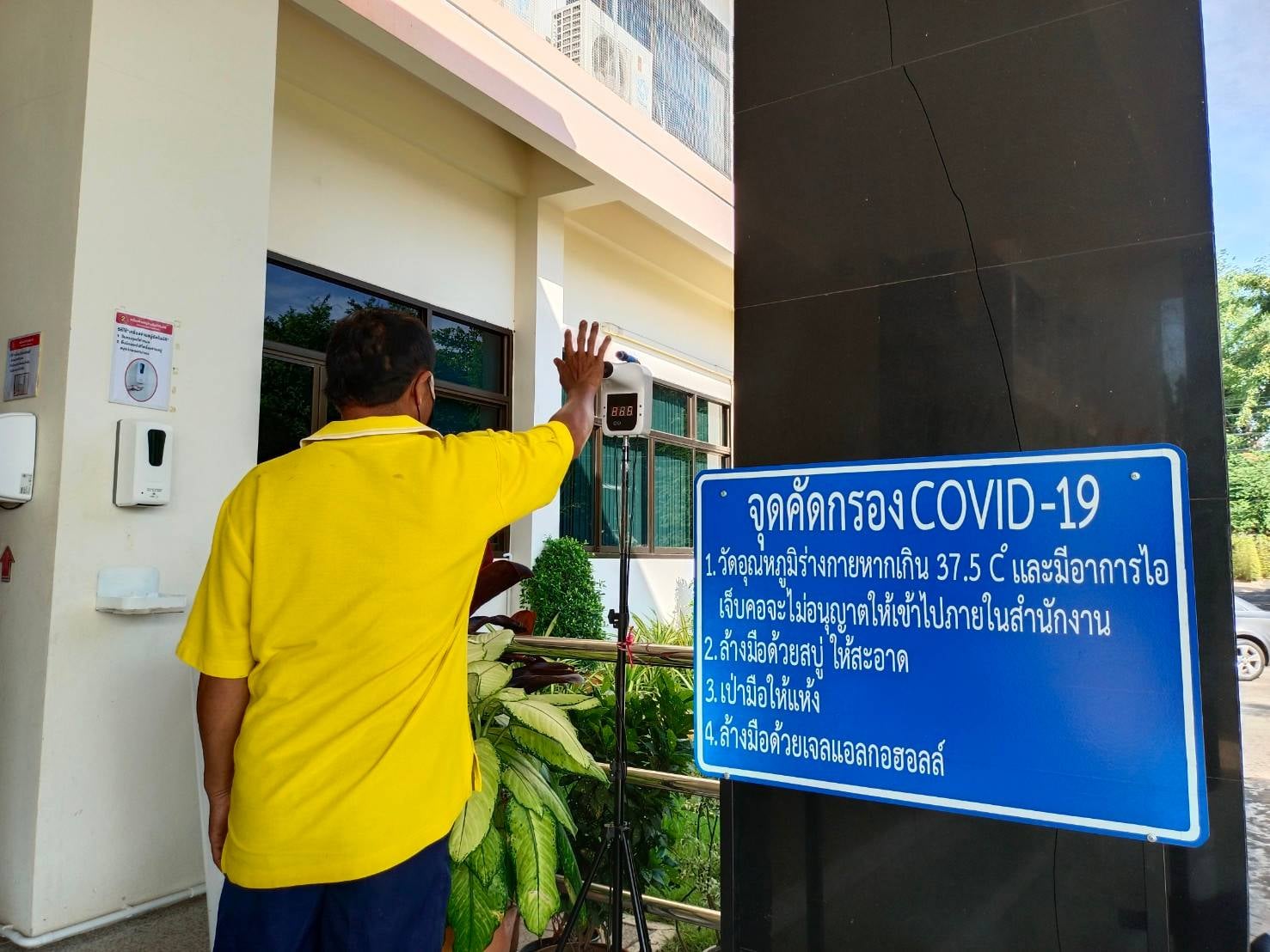 ได้จัดตั้งจุดคัดกรองด้วยเครื่องวัดอุณหภูมิ บริเวณทางเข้าด้านหน้สำนักงาน ตรวจวัดไข้และคัดกรองข้าราชการ เจ้าหน้าที่ และประชาชนที่มาติดต่อราชการ เพื่อเฝ้าระวังและป้องกันการแพร่ระบาด เชื้อไวรัส COVID – 19 ตั้งแต่เวลา 07.00 น. – 16.30 น. ให้เป็นไปอย่างต่อเนื่องเป็นประจำทุกวัน จนกว่าสถานการณ์จะเข้าสู่สภาวะปกติ