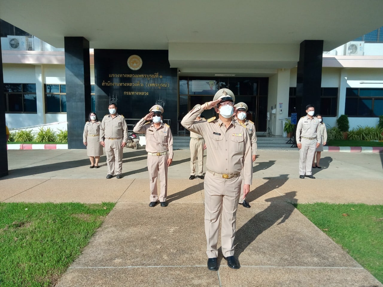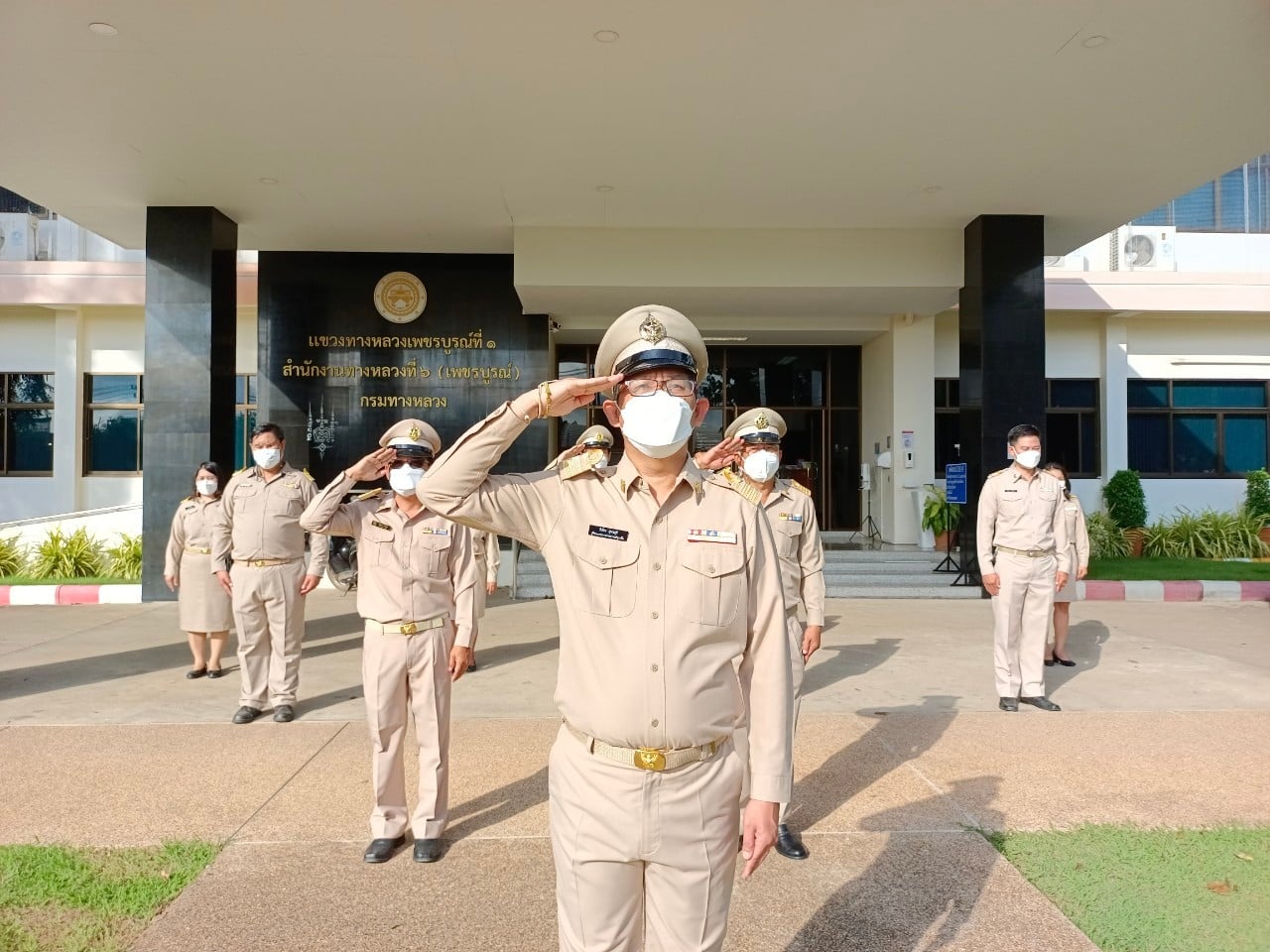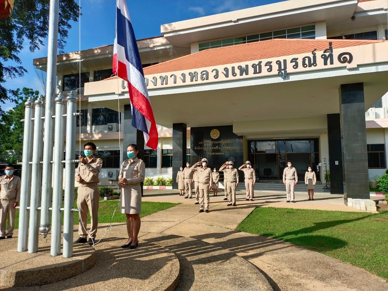 วันที่ 28 กันยายน 2564 เวลา 08.00 น. นายวันปิยะ ภุมมะภูติ ผู้อำนวยการแขวงทางหลวงเพชรบูรณ์ที่ 1 นำคณะเจ้าหน้าที่ ร่วมกิจกรรมเคารพธงชาติและร้องเพลงชาติไทย เนื่องในวันพระราชทานธงชาติไทย 28 กันยายน (Thai National Flag Day) ประจำปี 2564 ณ บริเวณหน้าเสาธง สำนักงานแขวงทางหลวงเพชรบูรณ์ที่ 1 ทั้งนี้ ได้ปฏิบัติตามมาตรการสาธารณสุข ป้องกันการแพร่ระบาดของโรคติดเชื้อไวรัสโคโรนา 2019 (covid-19) อย่างเคร่งครัด