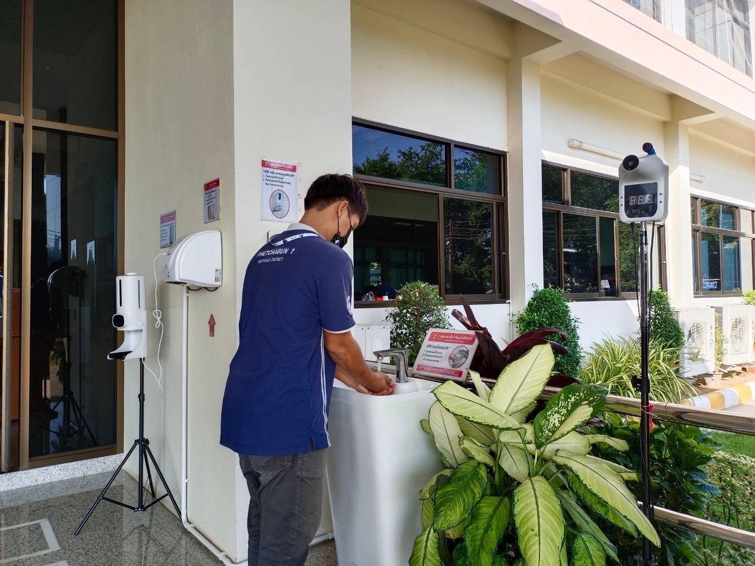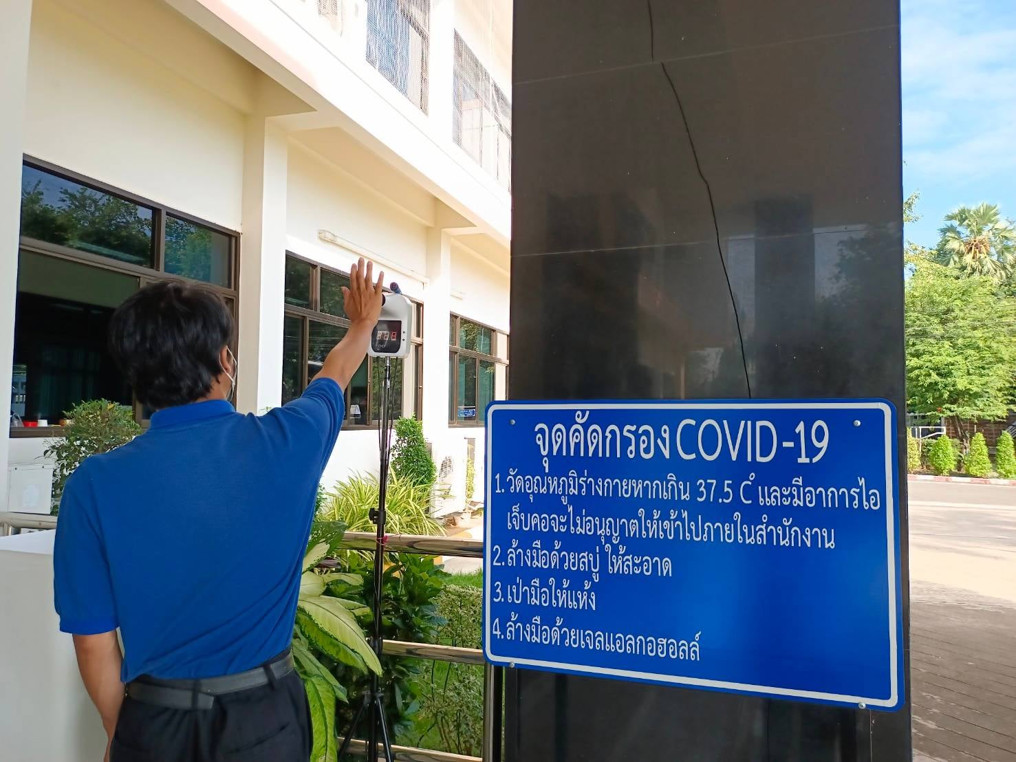 ได้จัดตั้งจุดคัดกรองด้วยเครื่องวัดอุณหภูมิ บริเวณทางเข้าด้านหน้สำนักงาน ตรวจวัดไข้และคัดกรองข้าราชการ เจ้าหน้าที่ และประชาชนที่มาติดต่อราชการ เพื่อเฝ้าระวังและป้องกันการแพร่ระบาด เชื้อไวรัส COVID – 19 ตั้งแต่เวลา 07.00 น. – 16.30 น. ให้เป็นไปอย่างต่อเนื่องเป็นประจำทุกวัน จนกว่าสถานการณ์จะเข้าสู่สภาวะปกติ