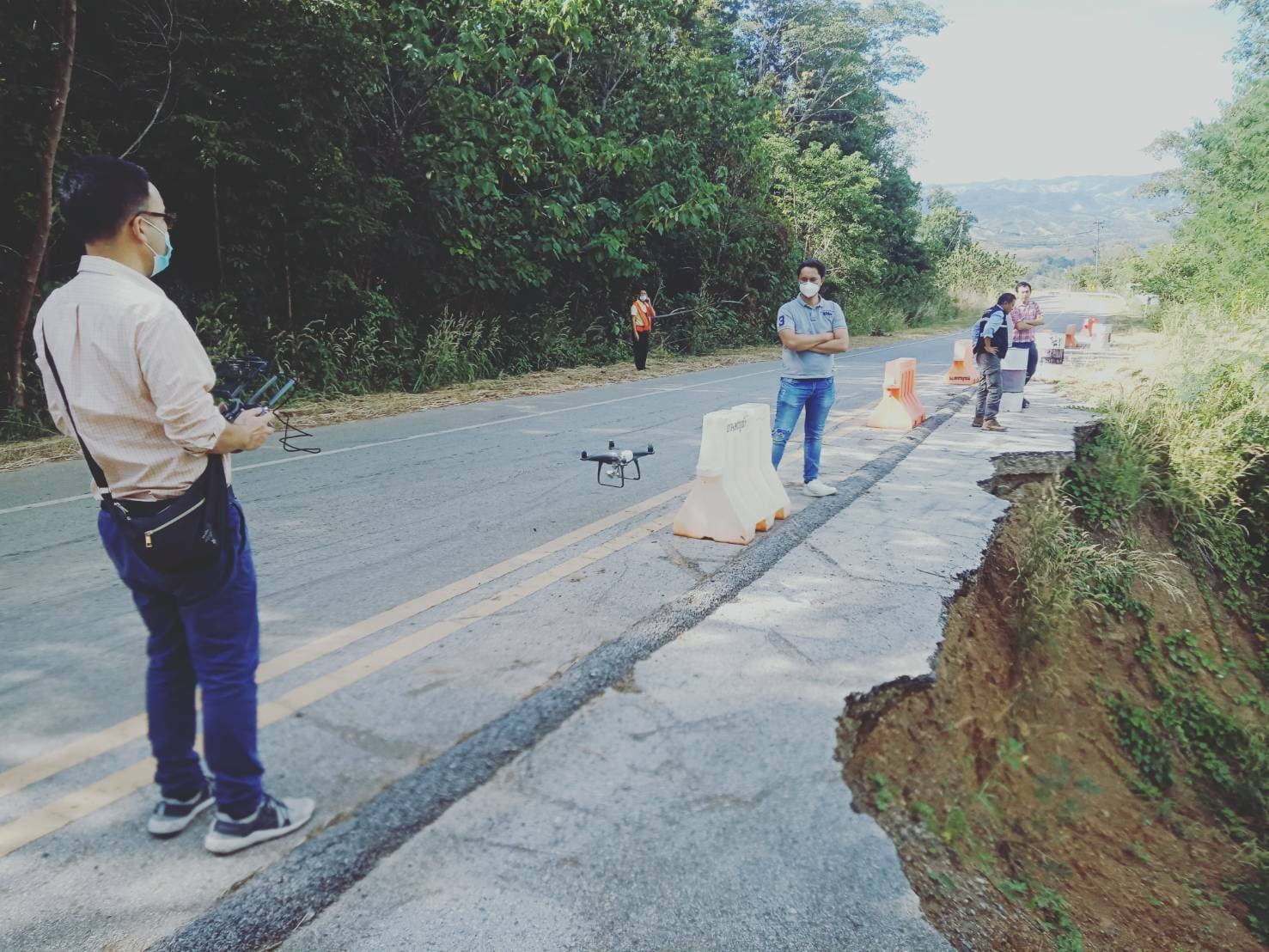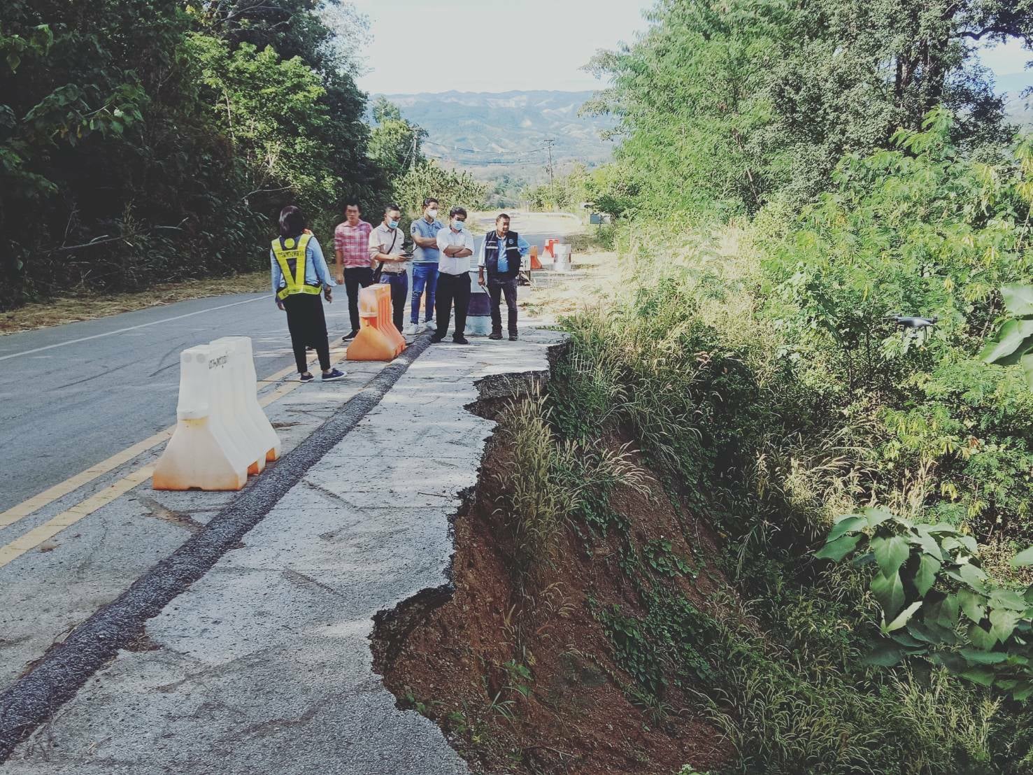ลงพื้นที่ตรวจสายทาง คันทางทรุดตัว ในทางหลวงหมายเลข 2216 ตอน โคกมน – กกกะทอน กม.75+060 – กม.75+130 กับเจ้าหน้าที่สำรวจและออกแบบ กรมทางหลวง