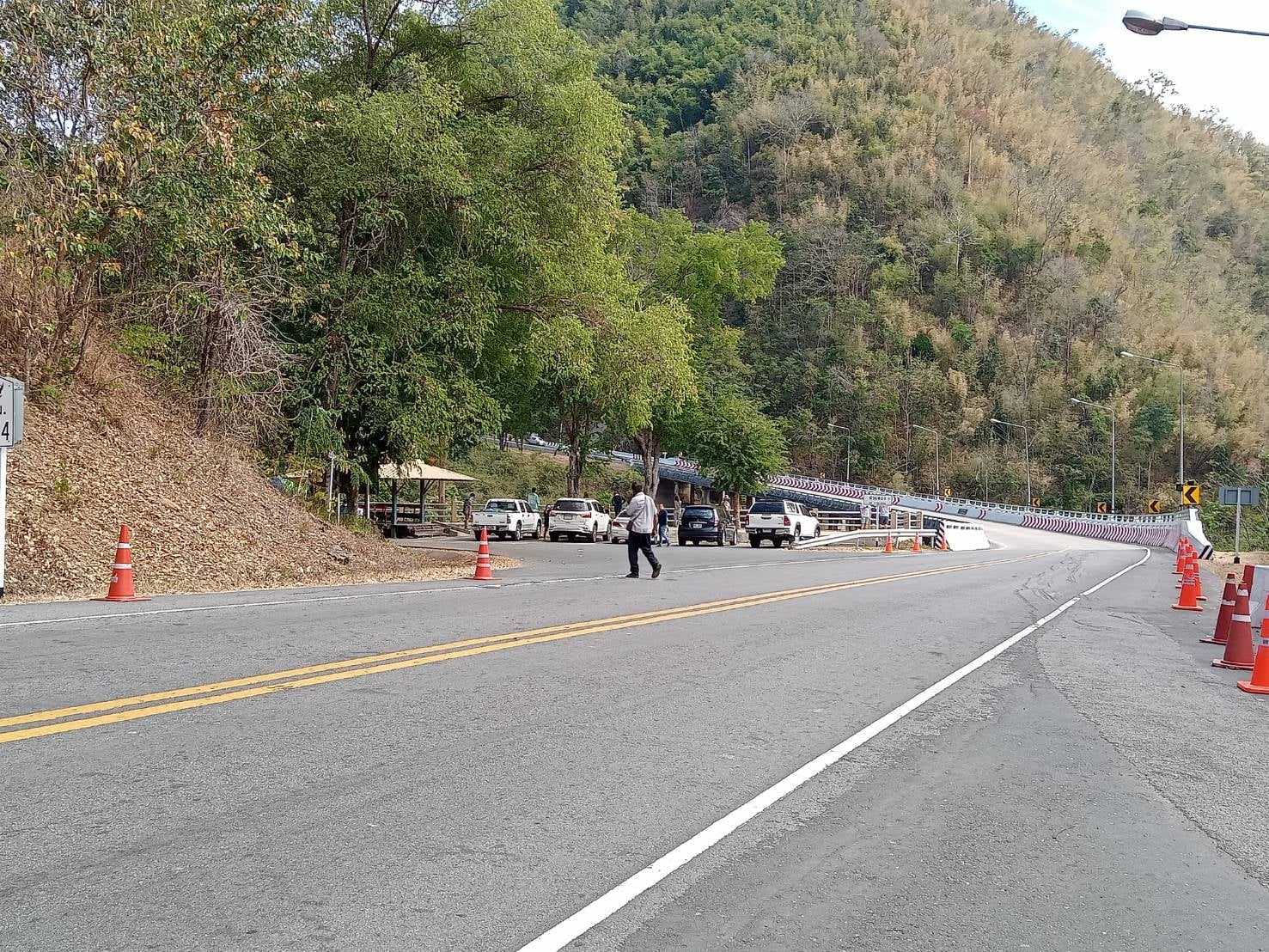 อำนวยความสะดวก สำหรับประชาชนผู้ใช้เส้นทาง ณ จุดให้บริการทั่วไทย (บริเวณสะพานพ่อขุนผาเมือง(ห้วยตอง)) ทางหลวงหมายเลข 12 ตอน แยกอาเซียน – น้ำดุก ที่ กม.374+366 (ด้านขวาทาง)