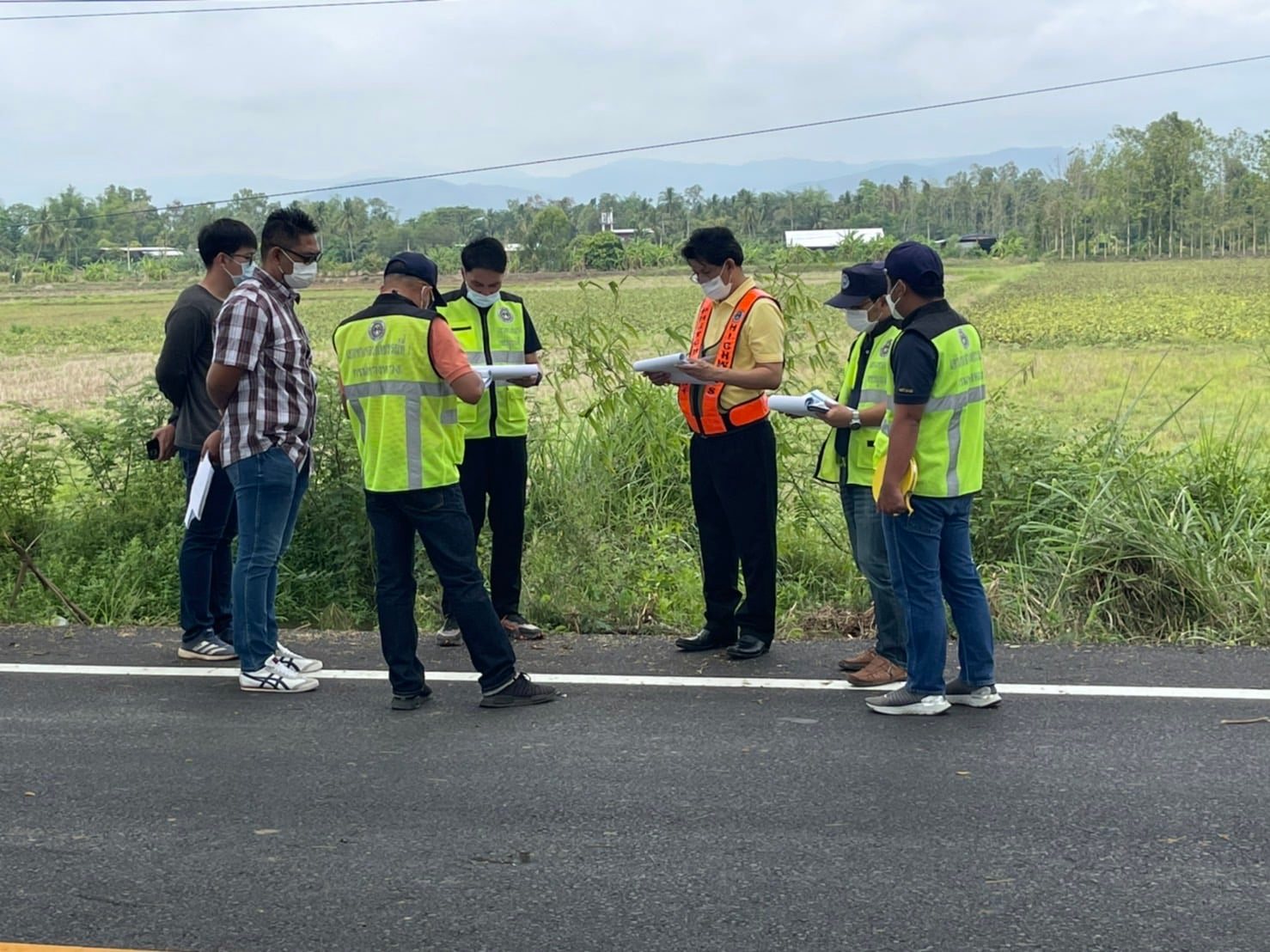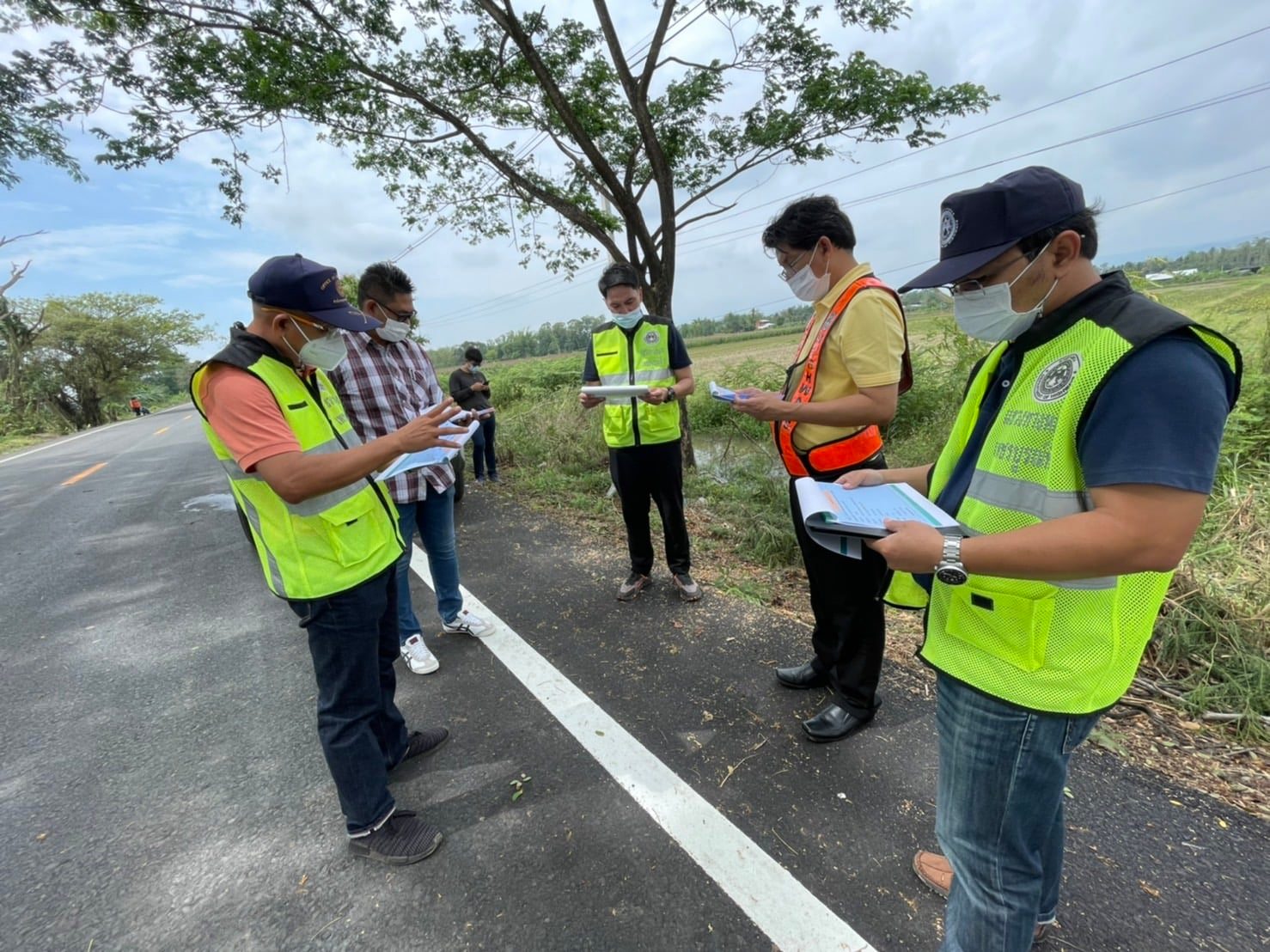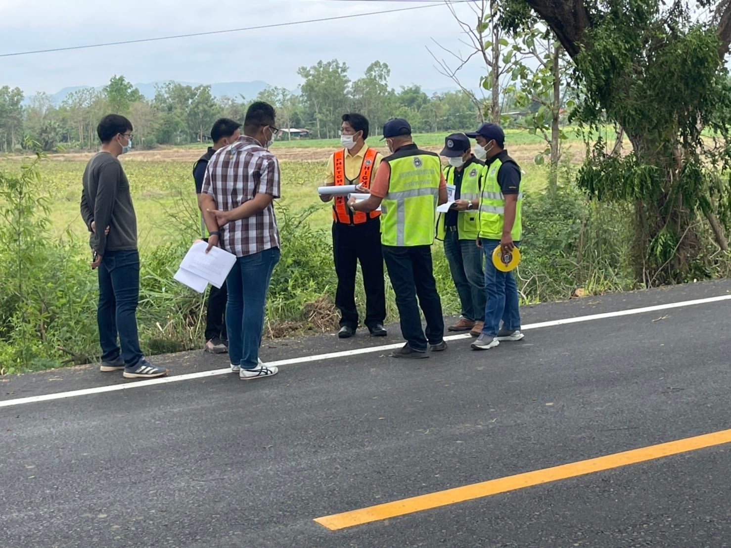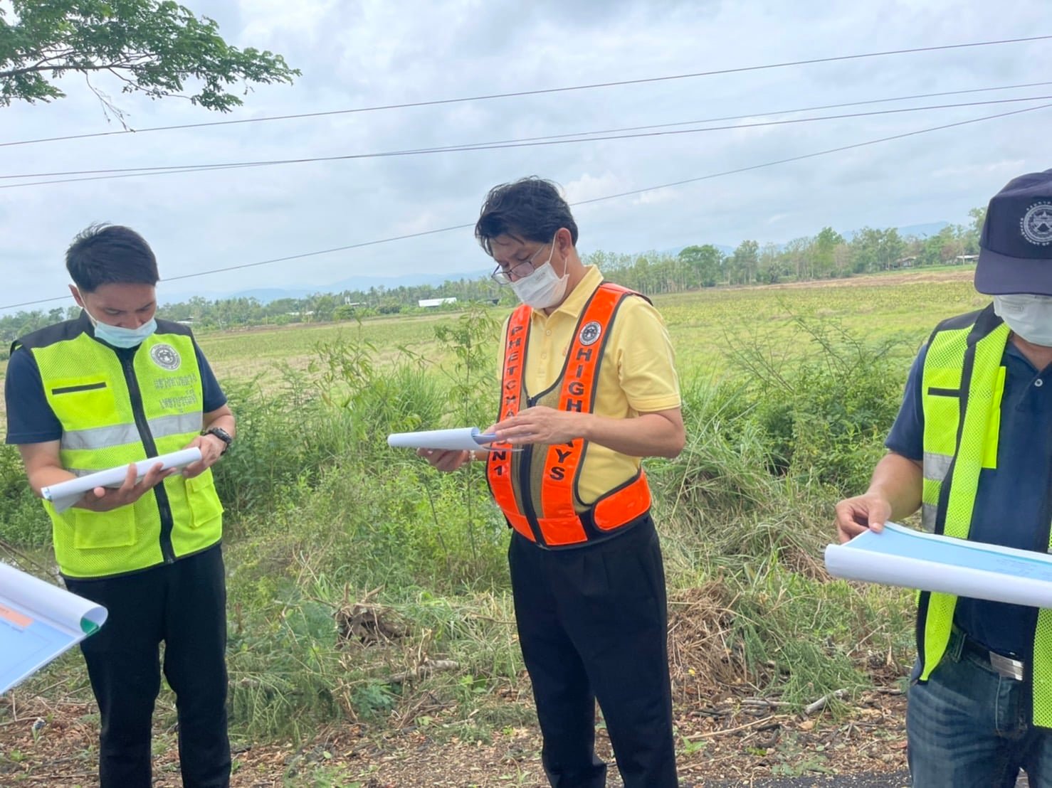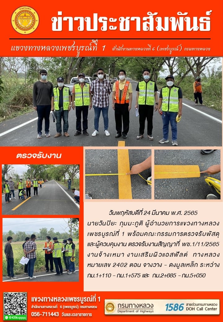 นายวันปิยะ ภุมมะภูติ ผู้อำนวยการแขวงทางหลวงเพชรบูรณ์ที่ 1 พร้อมคณะกรรมการตรวจรับพัสดุ และผู้ควบคุมงาน ตรวจรับงานสัญญาที่พช.1/11/2565 งานจ้างเหมา งานเสริมผิวแอสฟัลต์ ทางหลวงหมายเลข 2402 ตอน จางวาง - ดงมูลเหล็ก ระหว่าง กม.1+110 - กม.1+575 และ กม.2+685 - กม.5+050