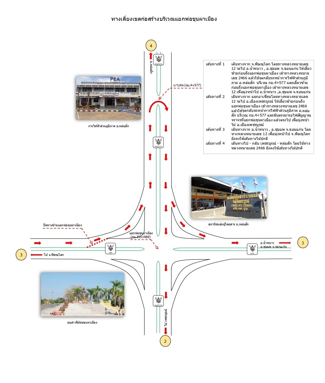 โดยจะเริ่มดำเนินการจัดการจราจรบริเวณแยกพ่อขุนผาเมือง ตั้งแต่ วันอังคารที่ 19 เมษายน 2565 อาจทำให้การสัญจรเกิดความไม่สะดวก จึงขอแจ้งประชาสัมพันธ์ให้ผู้ใช้เส้นทาง โปรดใช้เส้นทาง ดังนี้