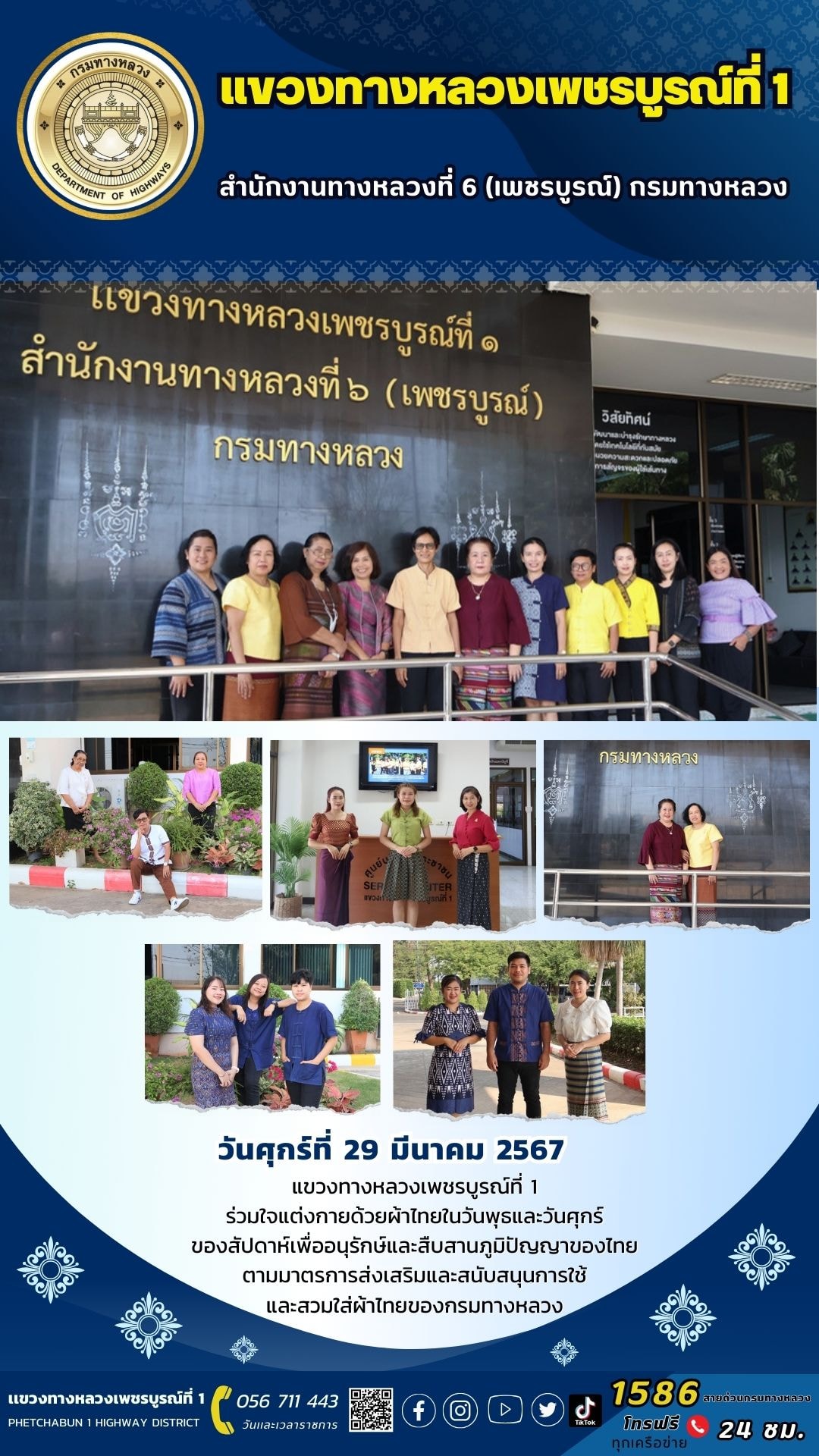 แขวงทางหลวงเพชรบูรณ์ที่ 1 ร่วมใจแต่งกายด้วยผ้าไทยในวันพุธและวันศุกร์
