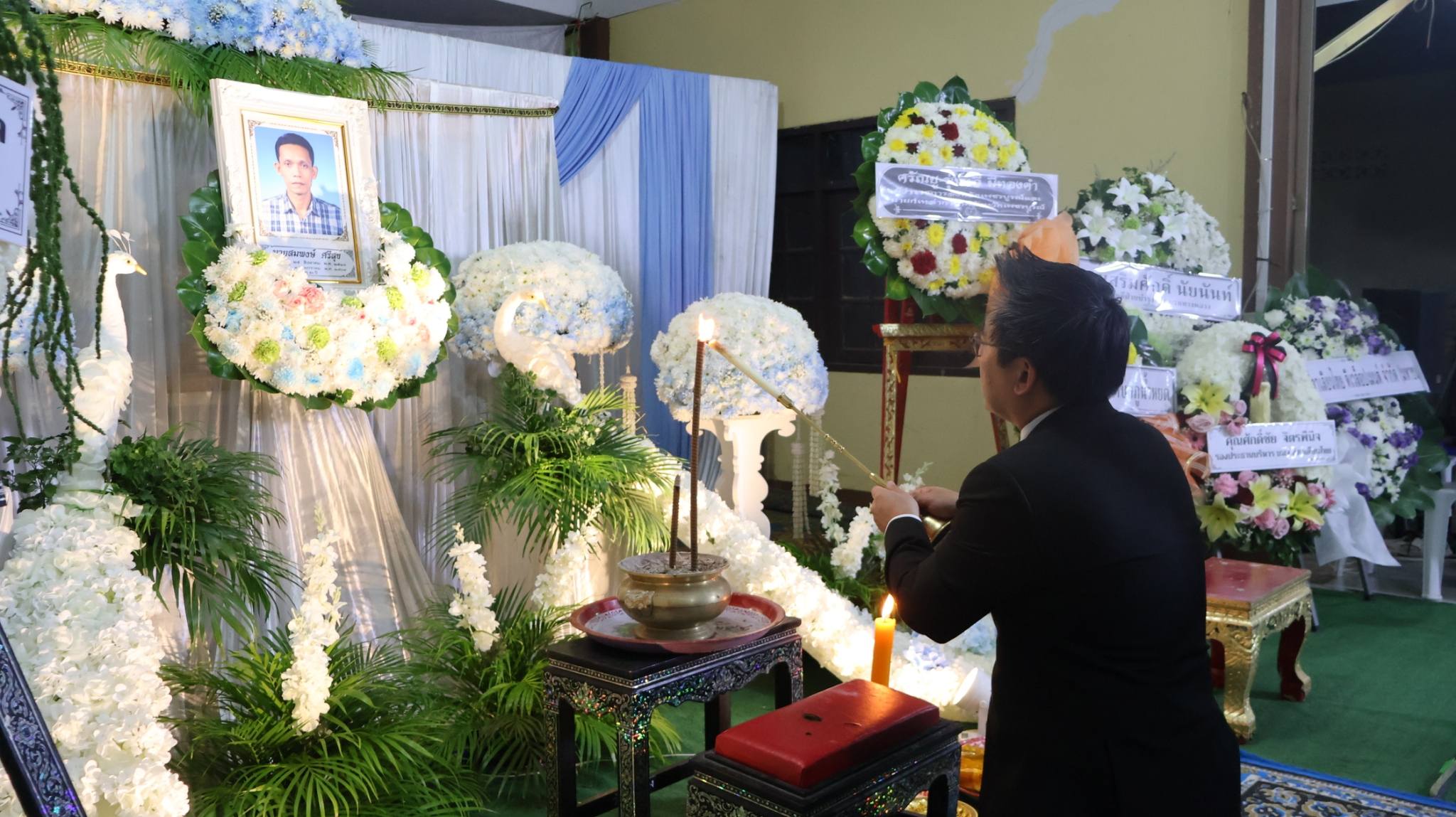 เข้าร่วมพิธีสวดพระอภิธรรม นายสมพงษ์ ศรีสุข ผู้เสียชีวิตจากกรณีอุบัติเหตุโครงเหล็ก LG ถล่ม บริเวณถนนพระราม 2