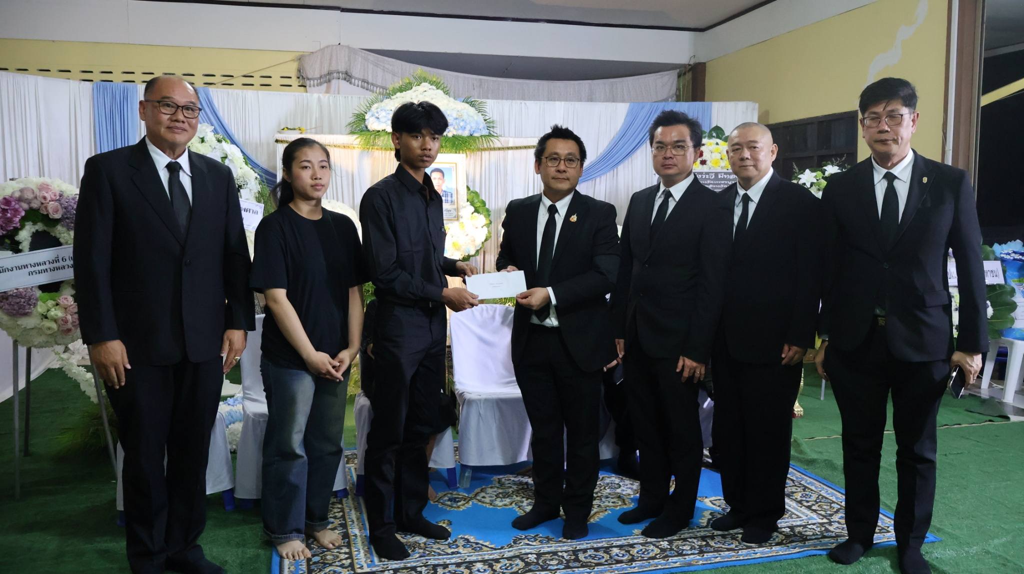 นายปิยพงษ์ จิวัฒนกุลไพศาล อธิบดีกรมทางหลวง (ประธาน) พร้อมด้วย นายสมบูรณ์ เทียนธรรมชาติ ผู้อำนวยการสำนักสำรวจและออกแบบ, นายธนศักดิ์ วงศ์ธนากิจเจริญ ผู้อำนวยการสำนักก่อสร้างสะพาน, นายวีระพล วงศ์วิเชียร เลขานุการกรม , นายทวีศักดิ์ รุจิจรรยาวัฒน์ ผู้อำนวยการสำนักงานทางหลวงที่ 6, นายเดชา พรวนพิทักษ์ ผู้อำนวยการแขวงทางหลวงเพชรบูรณ์ที่ 1 พร้อมด้วยคณะเจ้าหน้าที่ สำนักงานทางหลวงที่ 6 (เพชรบูรณ์) และ แขวงทางหลวงในสังกัด เข้าร่วมพิธีสวดพระอภิธรรม นายสมพงษ์ ศรีสุข ผู้เสียชีวิตจากกรณีอุบัติเหตุโครงเหล็ก LG ถล่ม บริเวณถนนพระราม 2 ณ วัดคลองยางศิริธรรม ตำบลภูน้ำหยด อำเภอวิเชียรบุรี จังหวัดเพชรบูรณ์ โดยกรมทางหลวงได้เป็นเจ้าภาพในพิธีสวดพระอภิธรรม