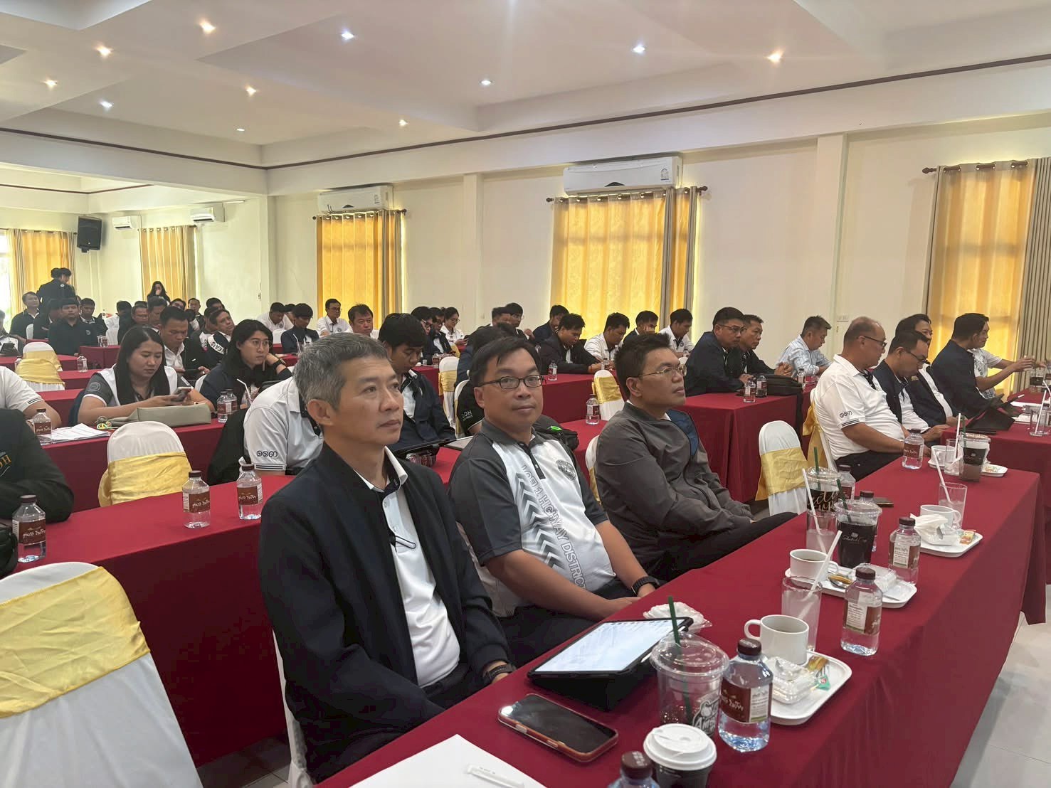 นายทวีศักดิ์ รุจิจรรยาวัฒน์ ผู้อำนวยการสำนักงานทางหลวงที่ 6 พร้อมด้วยนายเดชา พรวนพิทักษ์ ผู้อำนวยการแขวงทางหลวงเพชรบูรณ์ที่ 1 และคณะผู้บริหาร ข้าราชการ ช่างผู้ควบคุมงาน เจ้าหน้าที่ผู้เกี่ยวข้องเข้าร่วมรับฟังการบรรยายพิเศษในหัวข้อ “การประยุกต์หลักการด้านวิศวกรรม จราจร เพื่อความปลอดภัยทางถนน (Application of Traffic Engineering Principles for Road Safety)” และเข้าร่วมการรับฟังการบรรยายพิเศษในหัวข้อ “ยานพาหนะขนาดและน้ำหนักเกินบนถนนและสะพาน:ความมั่นคงปลอดภัยของโครงสร้าง ความปลอดภัยด้านการขนส่ง และแผนการจัดบริหารจัดการจราจร (Oversize-Overweight Vehicles on Roads and Bridges:Structural Integrity, Transportation Safety and Traffic Management Plan)” ณ ห้องประชุมอุ่นรักริมโขง รีสอร์ท อำเภอเชียงคาน จังหวัดเลย