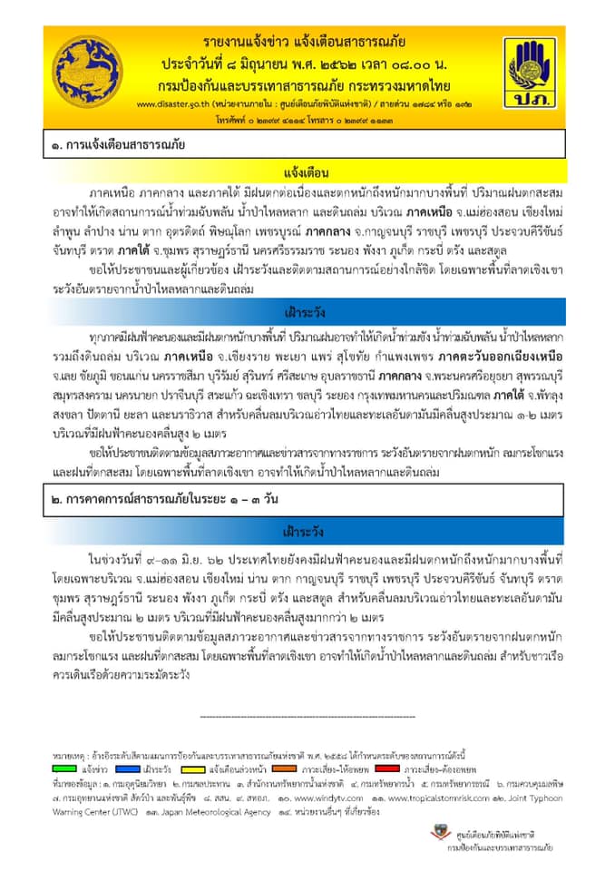 แจ้งข่าว แจ้งเตือนสาธารณภัย ประจำวันที่ 8 มิถุนายน 2562