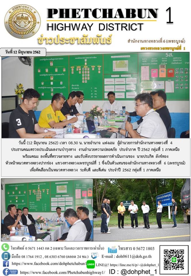 ประธานคณะตรวจประเมินผลงานบำรุงทาง งานอำนวยความปลอดภัย ประจำภาค ปี 2562 กลุ่มที่ 1 ภาคเหนือ พร้อมคณะ ลงพื้นที่ตรวจสายทาง และรับฟังบรรยายผลการดำเนินงานของ นายประกิต สังข์ทอง